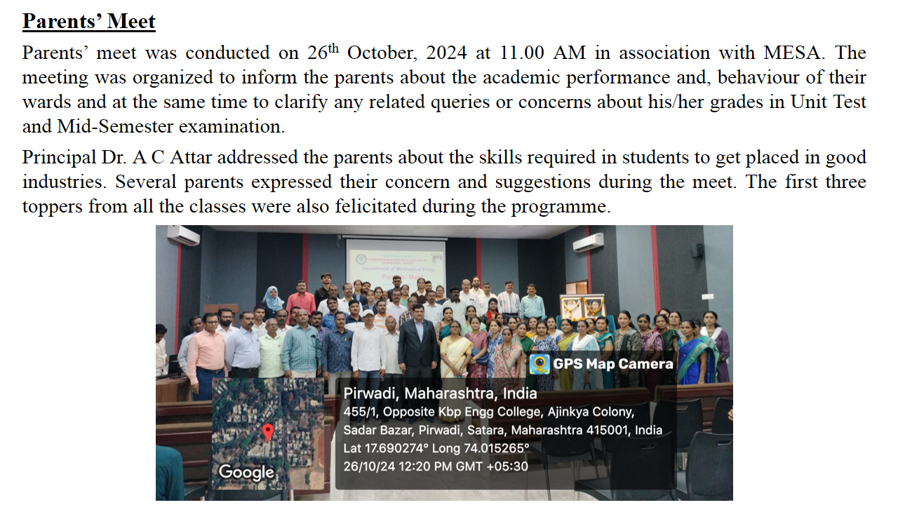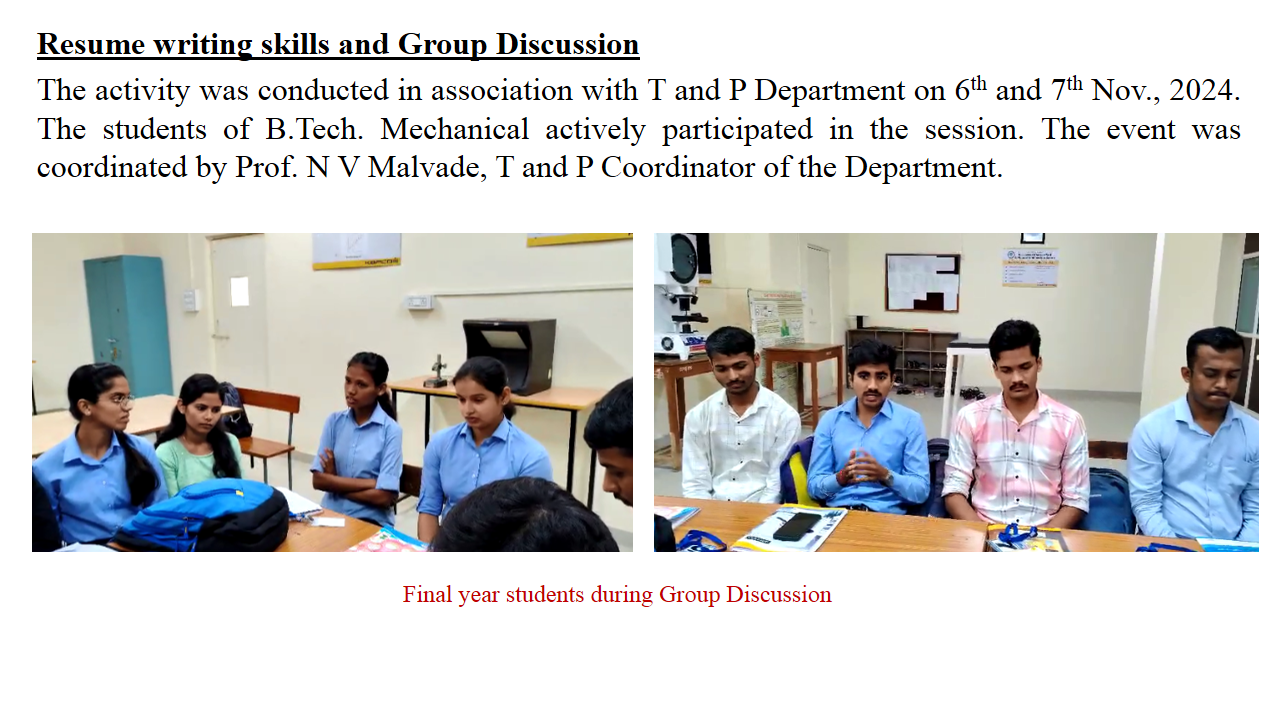 Departmental Activities of Mechanical Engineering: