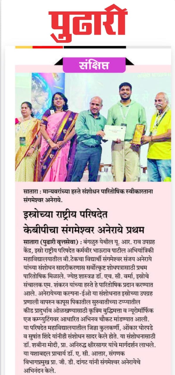 Grand Success in Rayat Avishkar Competition–2025 We are proud to announce that *Karmaveer Bhaurao Patil College of Engineering, Satara (KBPCOES) has achieved remarkable success by winning prizes in all categories at the prestigious Rayat Avishkar Research Competition–2025. Category-wise Achievements: Language, Humanity & Fine Arts ..Ghansham Balkrushna Dalvi (TY CSE) The Social Impact of Ephemeral Communication Mentor-Dr.Shabina Modi Medicine & Pharmacy Rucha