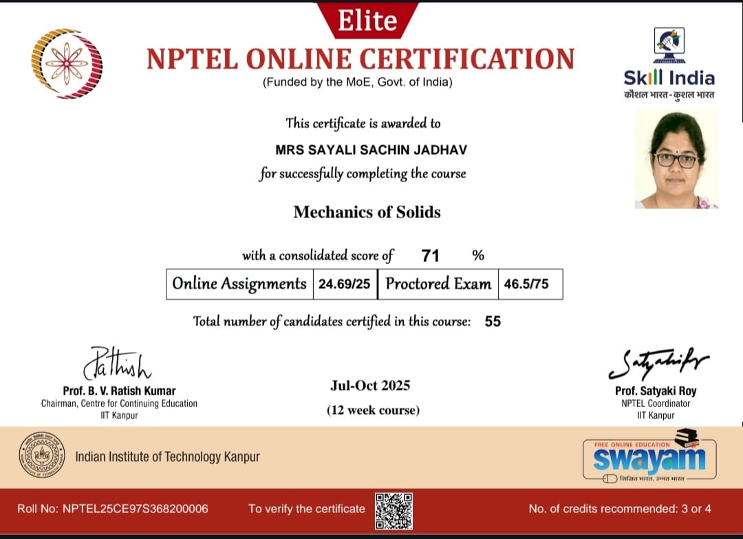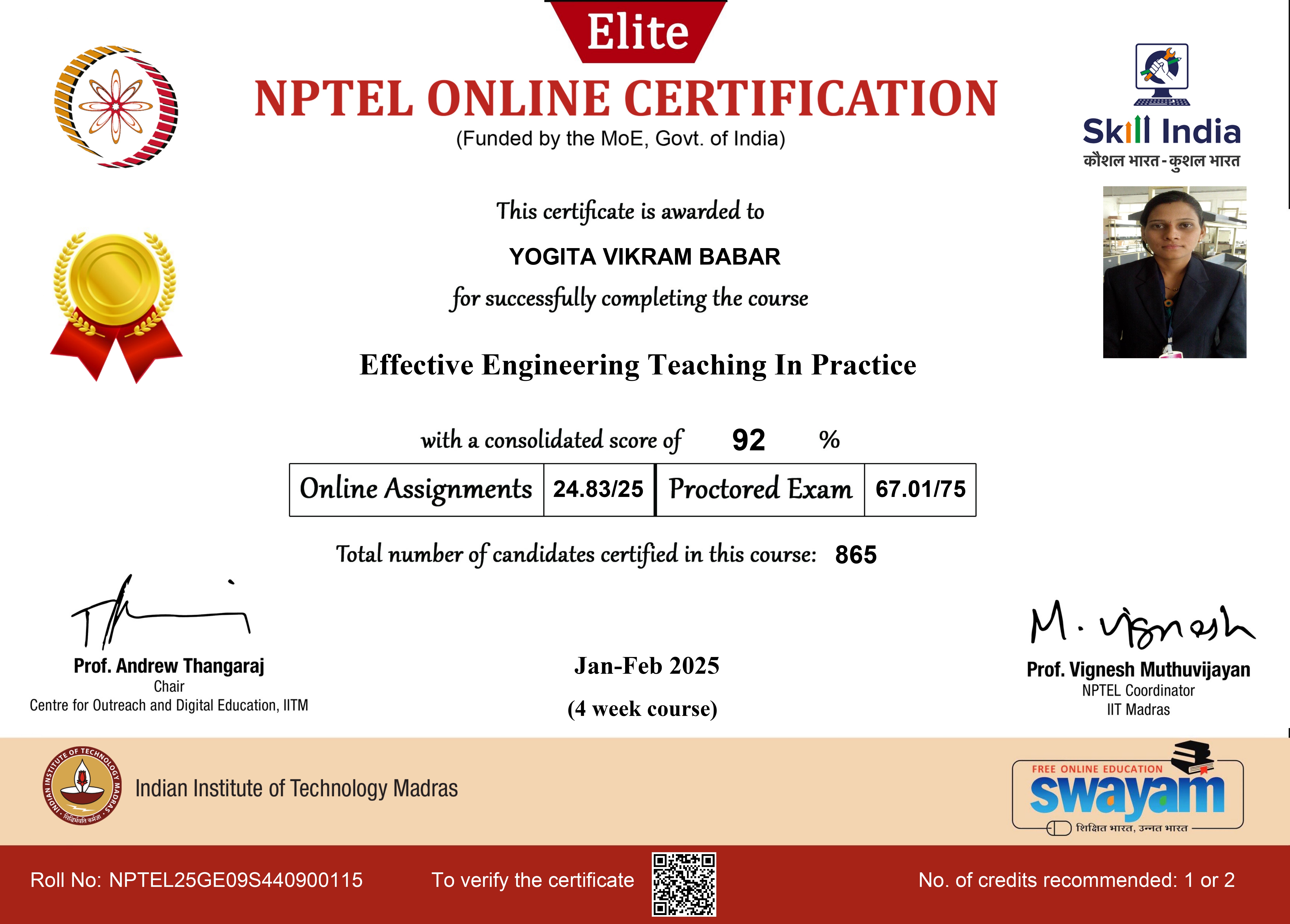 22 Oct 2022 Mrs. Yogita v. BabarCompleted NPTEL AICTE Faculty